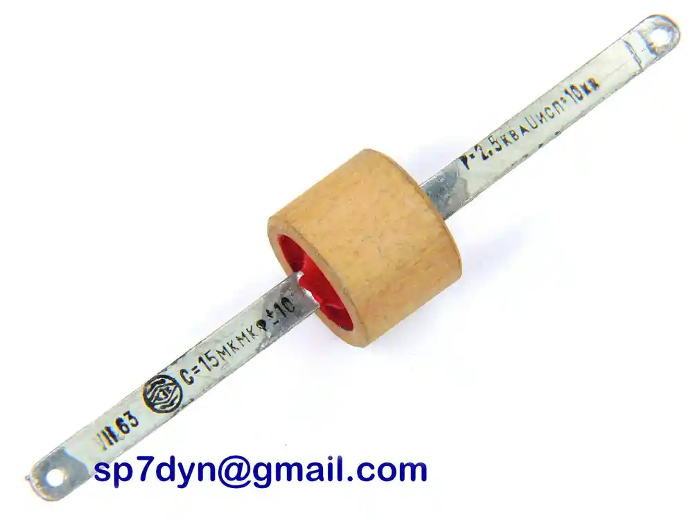 Specifications: Manufacture -------------- Military Russian Army Type --------------------- Ceramic Doorknob Capacitor Capacity ----------------- 15pF Operating voltage -------- 10KV Rated Power -------------- 2.5 KWAr Condition ---------------- New -Some of the capacitors have been removed from new reserve transmitters! Price is for ------------- 1 piece
