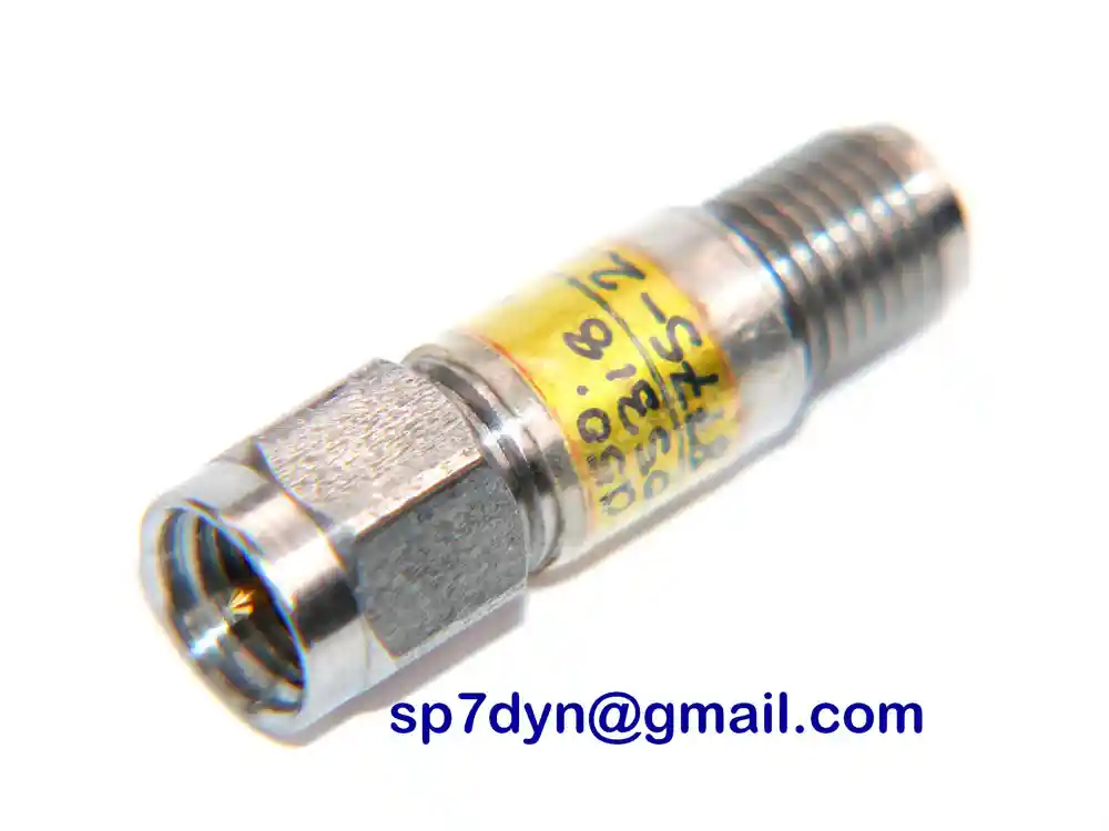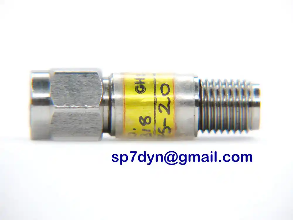 SPECIFICATIONS: Brand -------------- Omni Spectra Model -------------- 2082-8775-20 Frequency Range ---- DC - 18GHz See Data Photos Plotts Attenuation -------- 20dB Impedance ---------- 50 Ohms Power -------------- 2W Connectors x2 ------ SMA M/F Insulation --------- Teflon Contacts ----------- Gold plated Material Housing --- Stainless Steel Length ------------- 25.7mm SN ----------------- 02 Price is for ------- 1 piece