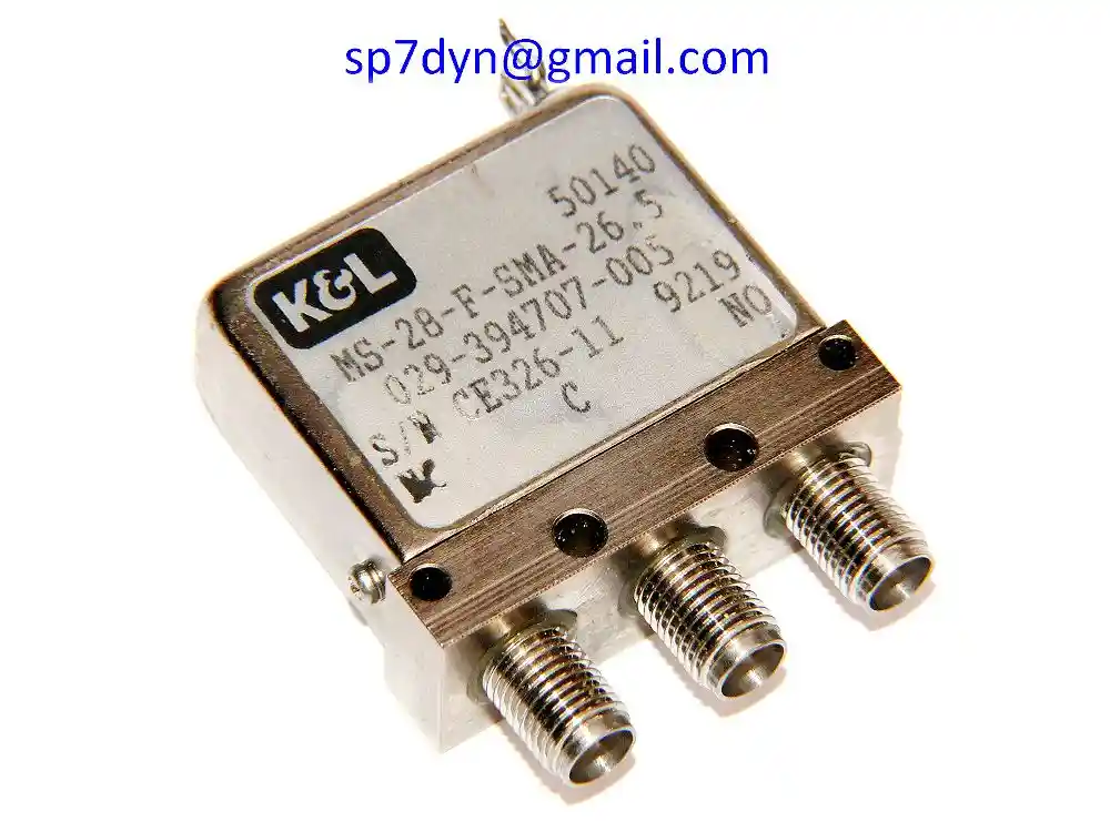 26GHz Switch Relay/9332/2 Low Loss K&L. Coaxial Switch Relay Failsafe (see photos) Used, Device is cosmetic scratches, removed from the new device – real, high quality photos! Switch is great for 24GHz band is fully tested, and functions in technical good condition – test OK. See other switches ————————- Click Here Useful links – knowledge base …